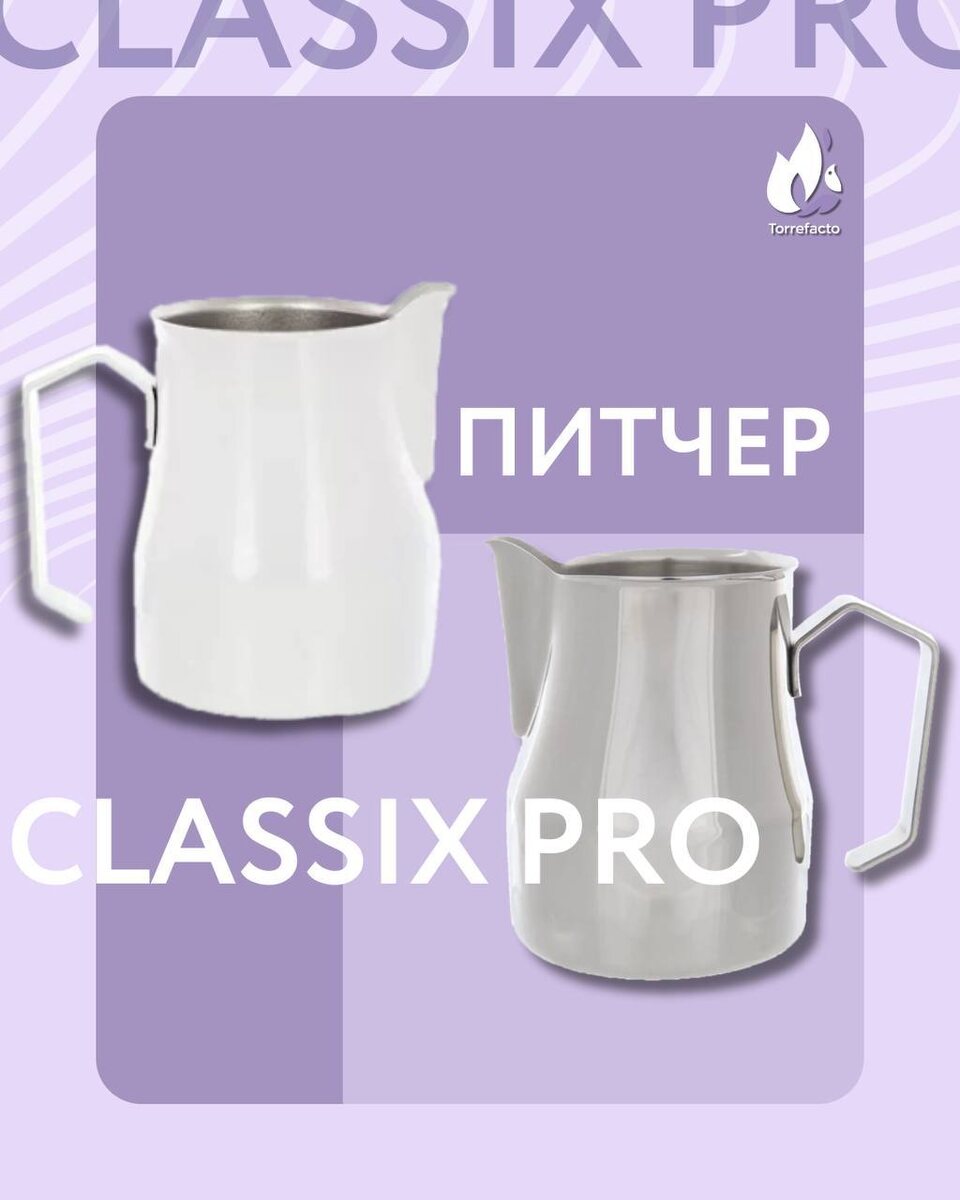 Задумайтесь на мгновение: утро, аромат свежезаваренного кофе, но…что-то не так. Молоко не взбивается, и вместо идеальной молочной пенки вы получаете лишь жалкую реальность своих ожиданий. 👀 Знакомая ситуация? Все мы знаем, как сложно создать тот самый идеальный капучино или латте дома. Ложка кофе с молоком – это одно, а вот добиться уровня бариста – серьезная задача. ⚡️Как же сделать так, чтобы каждое ваше утро начиналось с вкусного кофе, а не с разочарования? Здесь на помощь приходит питчер для молока и у нас есть идеальное решение! Питчер Classix Pro станет вашим надежным помощником. Что круто? ▫️ Идеальная форма носика — заостренный, с легким изгибом для точного контроля ▫️Удобная большая ручка — комфорт в каждое вливание ▫️ Нержавеющая сталь толщиной 1,2 мм — надёжность и долговечность ▫️ Матовая внутренняя отделка и глянцевая внешняя полировка — стиль и качество в одном флаконе И для любителей не только вкуса, но и дизайна — белый питчер с тефлоновым покрытием! Classix Pro –