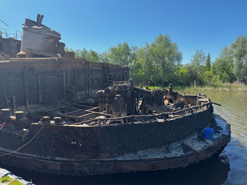 Затонувший 14 лет назад теплоход «Пожва» подняли со дна Куйбышевского водохранилища