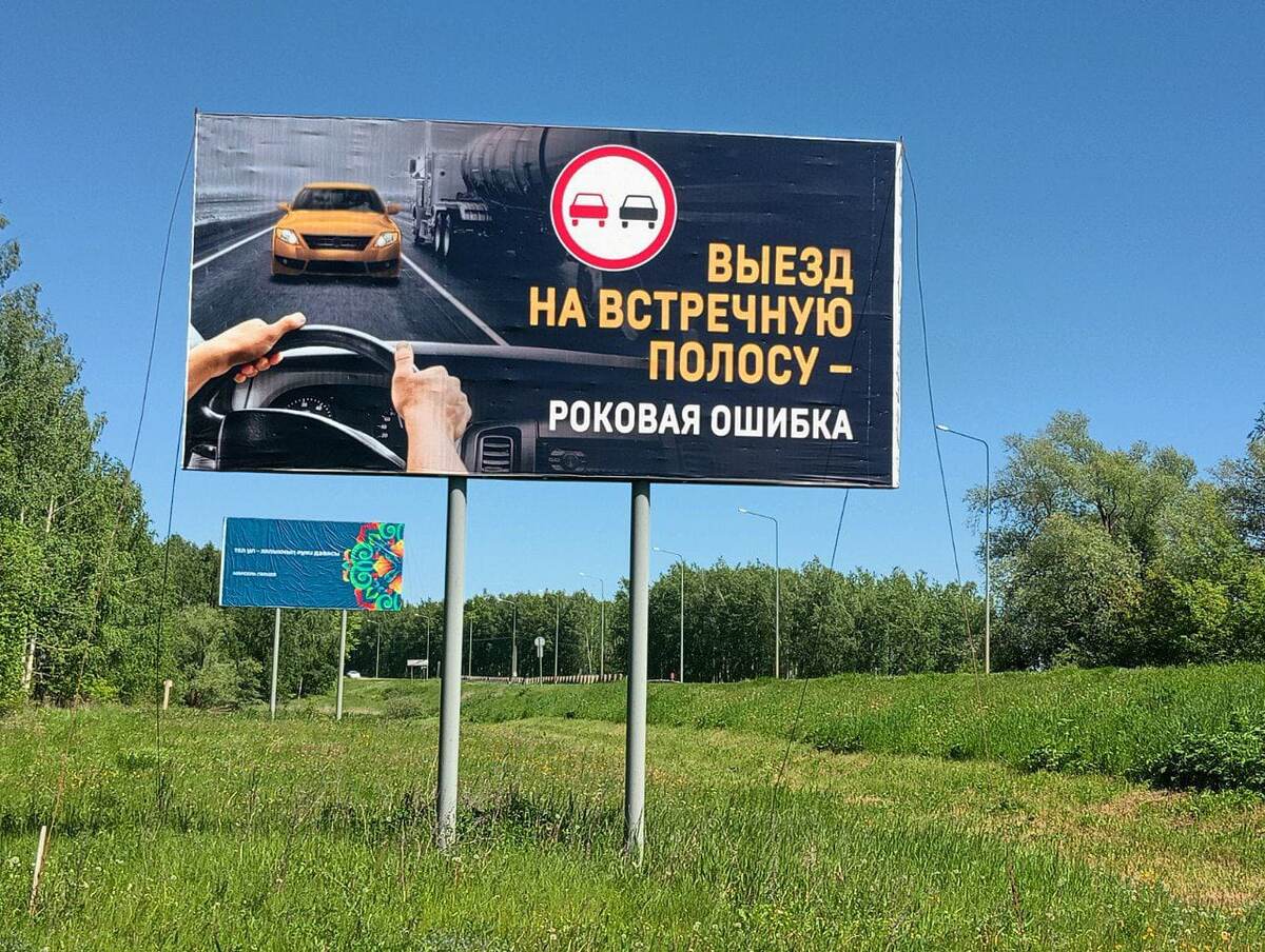 На выезде из села Старое Дрожжаное (46 км трассы Казань – Ульяновск – Старое Дрожжаное) появился новый баннер с важным предупреждением. Напоминаем: обгон по встречной полосе — одна из главных причин смертельных аварий!