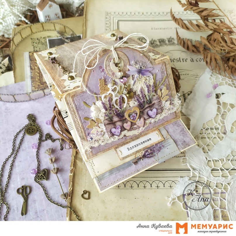 Сегодня у меня лавандовое настроение и я Анна Куваева, пришла к вам со своим вдохновением в виде раскладной интерьерной открытки. Работала с коллекцией от Paper Home 30.5 х 30.5 см "Время помечтать" , она такая нежная, непременно продолжу творить из нее! Конструкция открытки не сложная и хоть и существует давно в различных вариациях, я такую делала впервые! Украсила я ее конечно металлическими украшениями, выбрала лавандово-бежевые оттенки в бронзе, шармики по теме, тканевые высечки от Rozeflowers , вырубка ножами Мимикат для мелких акцентов, ну а в основе нож для вырубки Agiart "Арки №2" . Также внутри открытки использовала шитье и окрашенный в кофе нотный лист, высечки, сделанные с помощью штампинга и конечно много машинной строчки! Особенно эффектно смотрятся закрепы на петлях из вырубки! Еще несколько фото с разного ракурса и я буду прощаться, надеюсь что немного вдохновила вас на творчество, быть может с лавандовым настроением! Пока-пока, до новых скорых встреч, с вами была Анна К