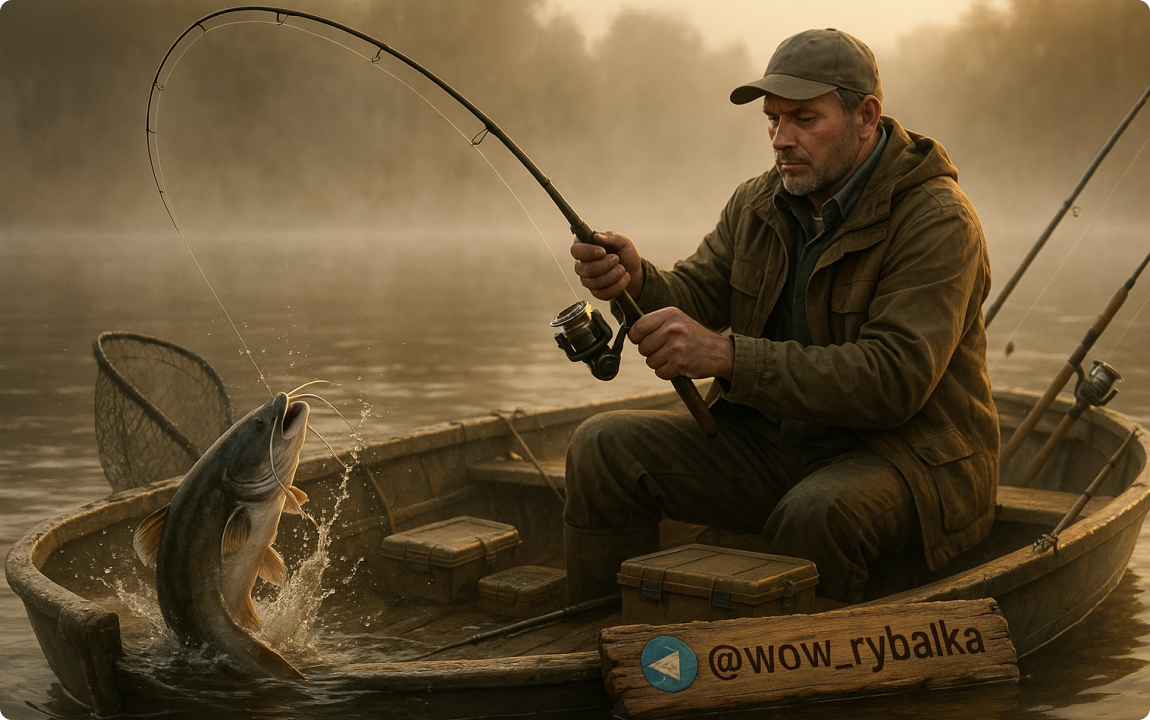 В тот день я не рассчитывал на крупняка. Просто хотелось тишины, воды и первых ударов по квоку в этом сезоне. Но всё пошло иначе. Расскажу, на что ловил, где стоял и как повёл себя сом, который решил проверить мою снасть на прочность. Ловил я на Волге, в районе старого ямного переката. Место проверенное — течение слабое, глубина до 7 метров, рядом бровка и коряжник. Снасть простая, но надёжная: С наживкой экспериментировал: был живец, выползок и кусочек печёнки в сетке. Сработал выползок, и очень бодро. Квок — мой любимый, самодельный, с чашей под лёгкий звон. Делал под себя, потому что люблю мягкий звук с лёгким эхом. Квочил с паузами: 5–6 квоков — 10 секунд тишины. Иногда менял ритм: быстрые двойные удары, потом — глухая пауза. Точку определил с эхолотом — но именно квок добил. Было ощущение, что сом поднялся из ямы после четвёртой серии ударов. Вытащить помогло всё сразу: 📹 Кстати, видео с момента вываживания я выложил в Телеграме — там видно, как он крутит у лодки: t.me/wow_rybalk