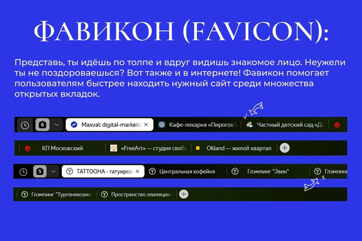 Фавикон — маленький герой большого веб-дизайна Если ты когда-нибудь задавался вопросом, что за милое изображение появляется на вкладке браузера рядом с названием сайта, знакомься — это фавикон! Да-да, даже для такого крошечного графического элемента существует официальное название. Многие по умолчанию используют автоматическую иконку от Тильды, потому что не знают, как установить фавикон, но не переживай — листай карточки, и мы покажем, как сделать это легко и быстро! Для примера будем использовать сайт «КП Московский».