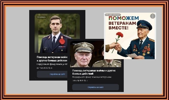 Привлекла внимание "соцреклама" одного благотворительного фонда. В рекламе сообщается, что фонд помогает ветеранам войн и иных боевых действий. С виду вполне себе приличный фонд. Только вот не совсем понятные лично для меня, что за фотоматериалы размещены в рекламе. Сразу скажу, что никаких претензий к работе организации я не имею. Но всё-таки хочется заострить внимание на реализации рекламного объявления. В объявлениях фонда размещены фото людей в форме. Но вот три фото показались мне странными. Давайте рассмотрим их. Объявление № 1 Объявление № 2 Объявление № 3 Как-то странновато, на мой взгляд, выглядят эти ветераны в объявлении № 1 и № 2. Точнее их форма. Да, возможно я не сильно разбираюсь в армейской форме, но на нашу, Советскую и Российскую, она мало похожа. Хоть в объявлении и не сказано, о каких ветеранах идёт речь, но предполагаю, что о наших. В объявлении № 3 обратите внимание на погоны и награды. Звёзды как генеральские, а погон с просветом. Да и награды... такое впечатле