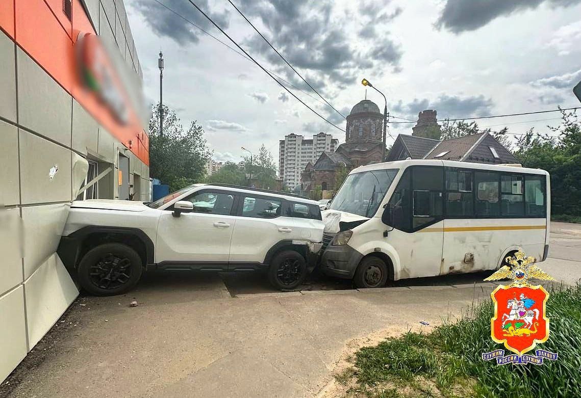 В Лобне автобус сводил китайский джип в Дикси. У маршрутки отказали тормоза - рассказали в Подмосковной полиции. Пассажиров внутри не было, никто не пострадал.