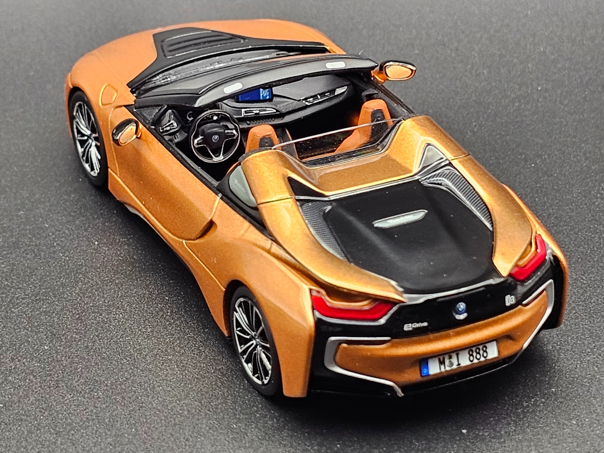 Модель BMW i8 roadster 2018 цвета медный металлик в диллерском исполнении выпустила компания Minichamps.