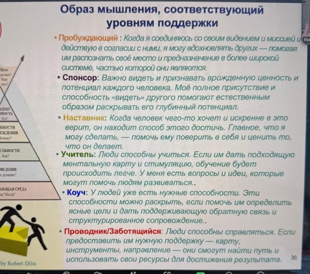 Почему провалился рынок наставничества? Сегодня куча «наставников» обещают тебе успех: — Повтори за мной, — Делай вот так, — Следуй моим шагам — и у тебя получится. Но у большинства не получается. Почему? Потому что они учат тебя что делать, иногда — как делать, но никогда не отвечают на вопрос: зачем тебе это вообще? Есть такая штука — пирамида уровней изменений. Представь: 1. Среда — где ты находишься, с кем общаешься. 2. Действия — что ты делаешь каждый день. 3. Навыки — как ты это делаешь. 4. Ценности — что для тебя важно по жизни. 5. Кто ты есть — как ты сам себя воспринимаешь. 6. Ради чего ты живёшь — твоя миссия, глубинный смысл. Так вот. Большинство наставников работают только на первых трёх уровнях. Они дают тебе метод, совет, схему. Но не помогают понять себя. А без ответа на вопросы: — Что для меня важно? — Кто я? — Ради чего я всё это делаю? всё остальное просто не работает. Поэтому люди сливаются, выгорают, откатываются назад. Наставничество провалилось, потому что