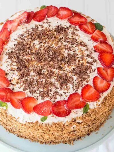 Этот восхитительный шоколадно-клубничный торт - идеальный рецепт. Мягкие и влажные слои шоколадного бисквита с клубничным пюре и сливочной глазурью, посыпанной кокосовой стружкой. Это простой в приготовлении торт, который станет идеальным десертом для любого праздничного стола. Обязательно попробуйте его приготовить. Вот рецепт шоколадного торта с клубникой. Продукты необходимые для его приготовления: