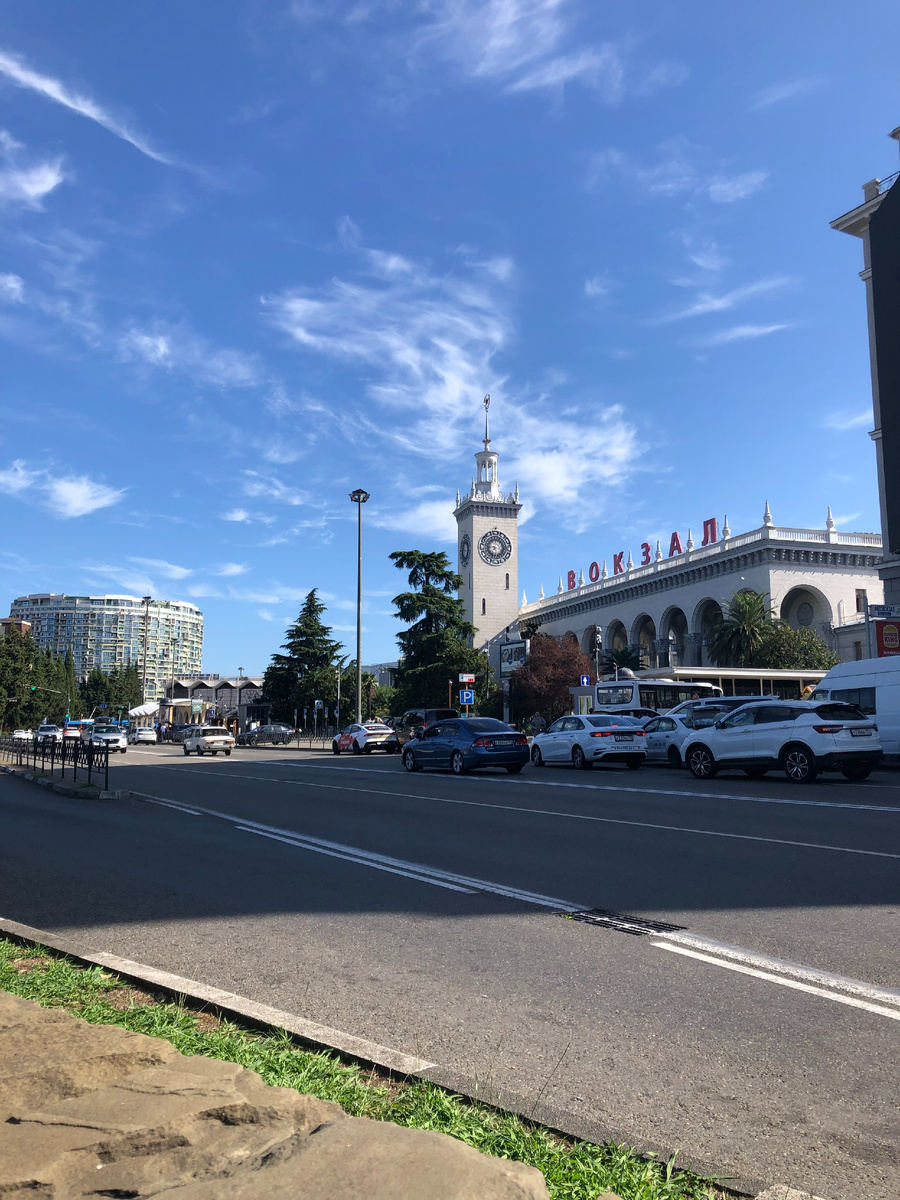 Продолжая наше знакомство с центром Сочи, нельзя обойти вниманием знаменитый Морской вокзал. Этот величественный архитектурный ансамбль построен в 1955 году и до сих пор поражает воображение своим великолепием. Высоко над гаванью возвышается белая башня, украшенная маскаронами и изящными балясинами, символизирующая морские путешествия и приключения.Здесь начинается особая история, полная романтики и чудес. Когда заходишь внутрь здания вокзала, чувствуешь себя героем старинной сказки, попавшим в гостиницу мечты. Зал ожидания декорирован лепниной, зеркалами и мрамором, создавая атмосферу роскоши и изысканности. Воздух насыщен запахами моря, слышатся голоса чаек и плеск воды.