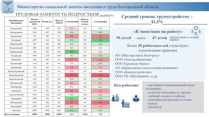Губернатор Вячеслав Гладков поручил провести специальные семинары, где будут разъяснены все аспекты легального трудоустройства несовершеннолетних. Особый акцент будет сделан на безопасности труда и адаптации рабочих мест под возможности подростков.