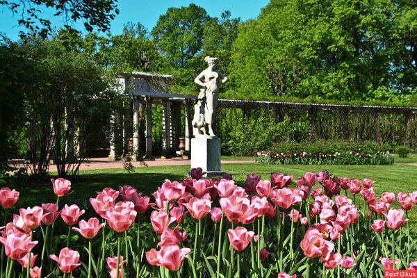 Есть там и тенистые перголы, где можно укрыться в жаркий день, обелиск победам Румянцева… он тогда всех восхищал своими ратными подвигами