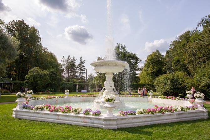 Вот только фонтана, с бьющей вверх струёй, не было в Екатерининские времена, он появился здесь гораздо позже