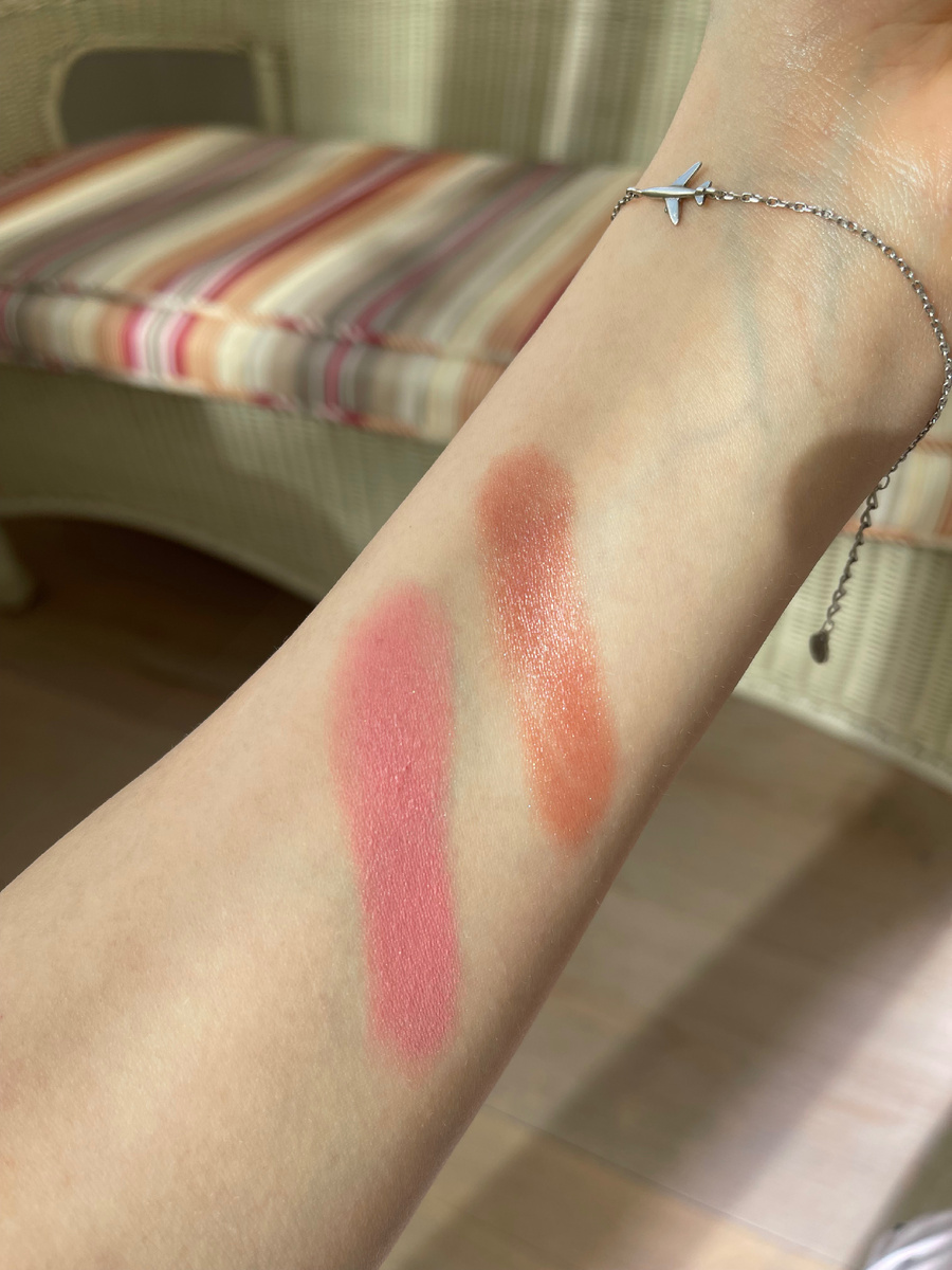 Румяна в стике Rhode наделали шума и удобно и красиво и естественно появилось много разных аналогов, сегодня на обзоре двойные румяна в стике duo blush stick soft matte & dewy от бренда Arive Makeup. Мало кто знает, но это бьюти-бренд Самоката. Очень много восторженных отзывов и рекламы, проверим. Упаковка имеет как плюсы, так и существенный минус. Это пластиковый матовый флакон, приятный тактильно, в виде стика с колпачками, продукт выкручивается. Приятный дизайн, но упаковка постоянно грязная с первого дня и продукт цепляется колпачком и это прям фу. Вес 10 гр. Оттенков очень много, у меня 02 Cool neutral, самый нейтральный, есть прям яркие, особенно популярный кукольный розовый 04. Рекомендую тестить в магазине. С одной стороны матовые муссовые, с другой-глянцевые влажные полупрозрачные, они понравились больше, можно смешивать между собой. Пахнут апельсинками, запах не сильно яркий. Консистенция приятная, тушуется и наслаивается легко, лучше это делать пальчиком или спонжем. С