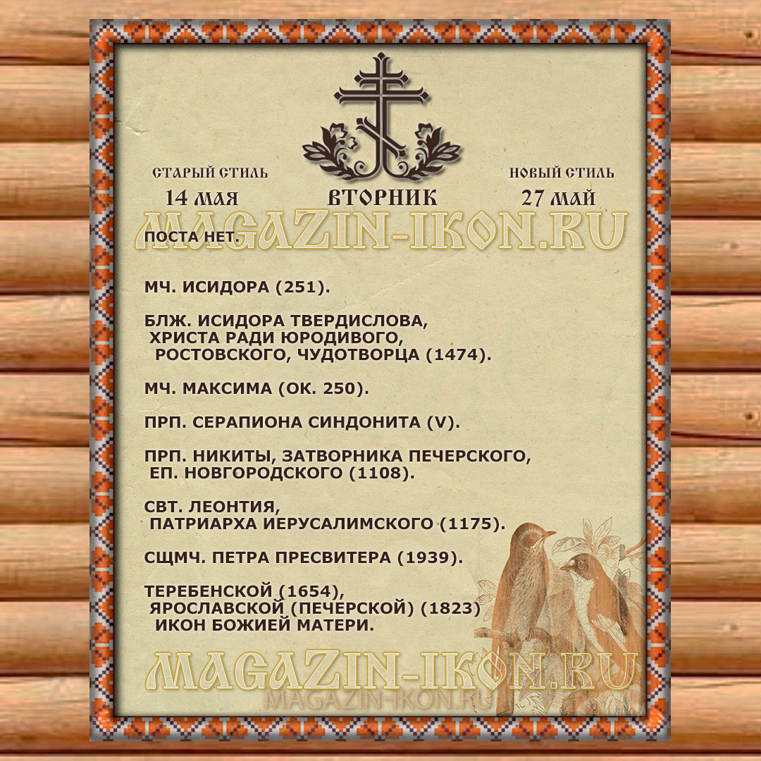 Православный церковный календарь 👉27 мая 2025 года от Р.Х.🕯