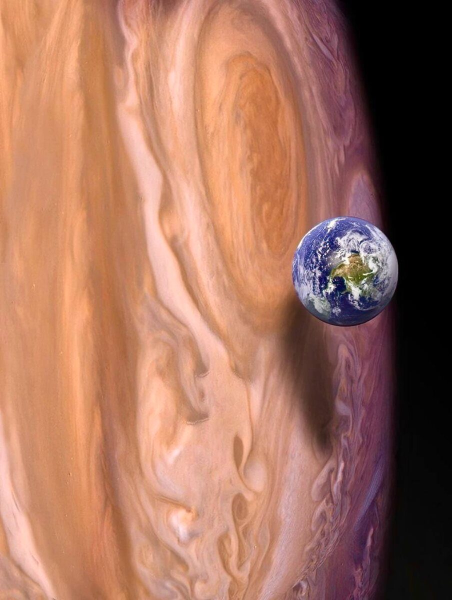 Внутри Юпитера могло бы поместиться 1 300 таких планет, как Земля.