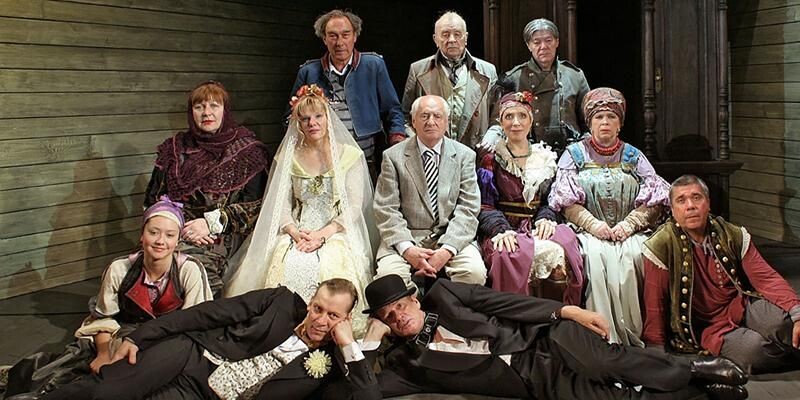 Для Театра на Юго-Западе «Женитьба» — особенный спектакль. Ведь именно с него в 1974 году началась история самого театра. И в некотором смысле он еще служит эталоном актерского существования на сцене. Многие поколения артистов проходили и до сих пор проходят через этот материал. А еще одна особенность «Женитьбы» в том, что все роли здесь исполняют мужчины, включая сваху и Агафью Тихоновну. И в этом совершенно нет никакой пошлости — просто открытый настоящий русский площадной театр.