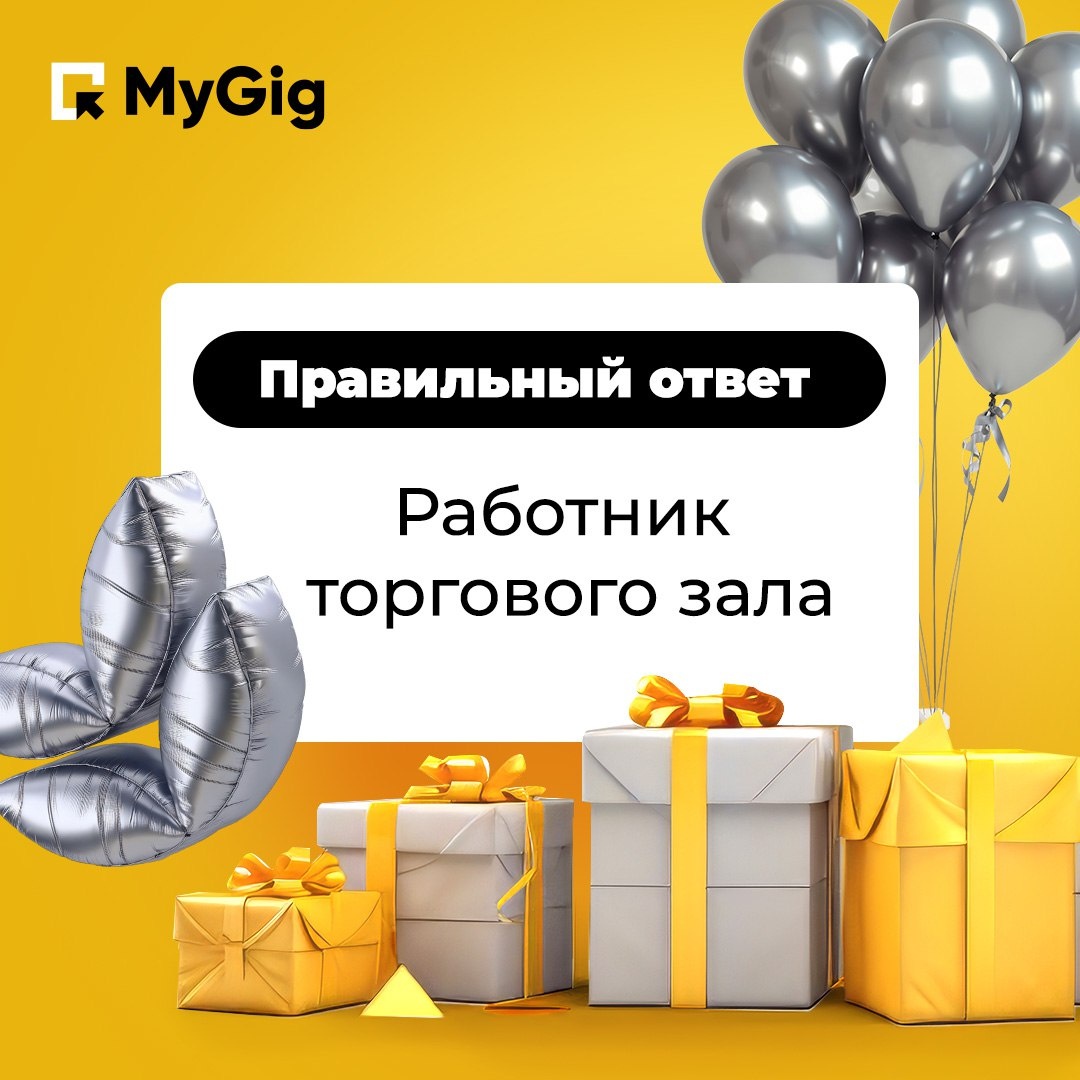 ✔️ Ответчаем на последний 5 вопрос нашей праздничной викторины на картинке Верный ответ — работник торгового зала (РТЗ), который безусловно играет важную роль в торговле, обеспечивая качественное обслуживание клиентов! В MyGig вы ежедневно выбираете смены по данной профессии, будь то продуктовая сфера (например, в Пятёрочке, Магните, Дикси, Ленте, Перекрёстке и др.) или же нет (к примеру, в Спортмастере, Ostin, Бубль-Гуме и т.д.) 5-0 в пользу гигеров — отличный результат, демонстрирующий вашу командную работу и знания! Благодарим всех участников праздничной викторины о MyGig ❤️ #МирТрудМайгиг #5летMyGig
