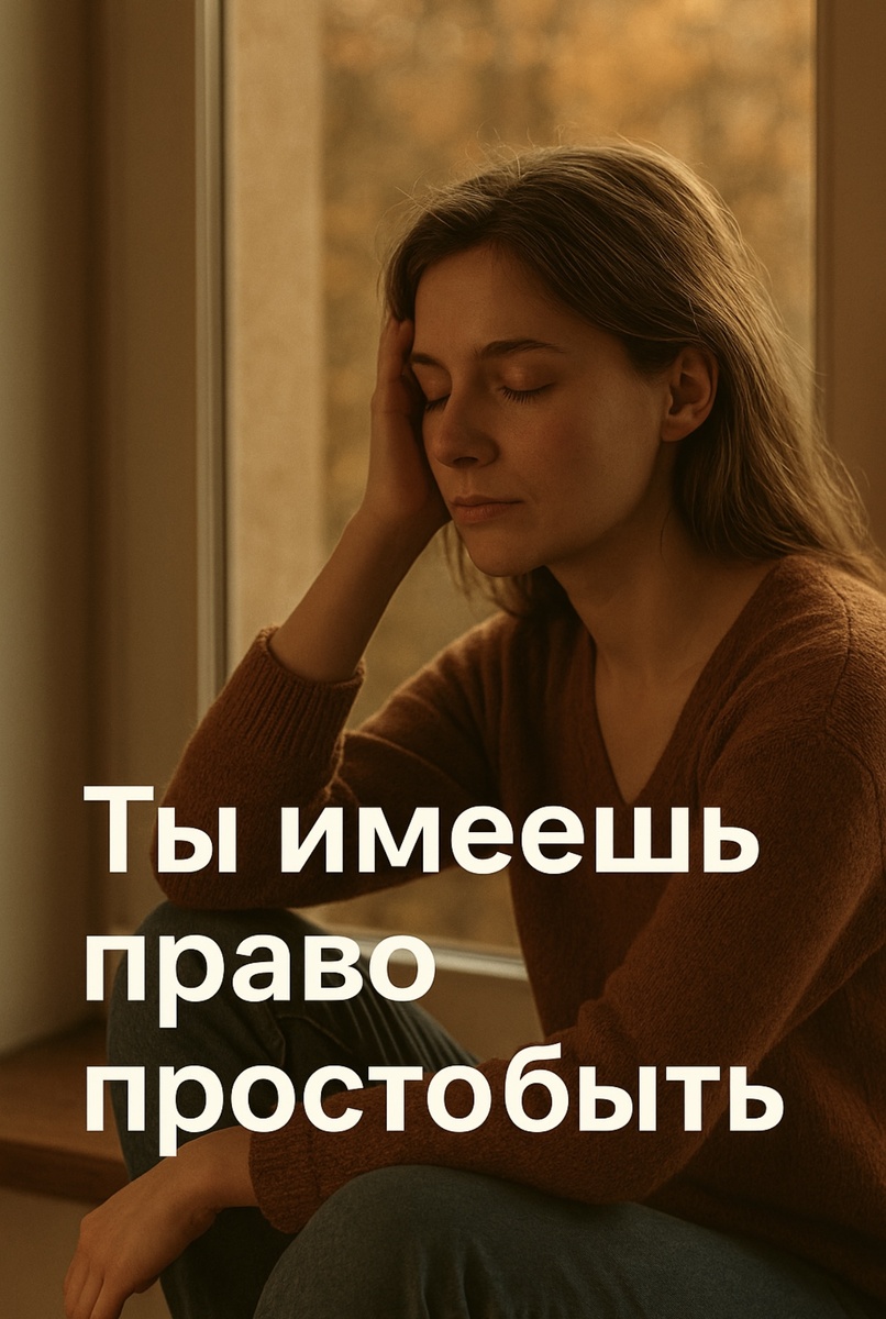 Ты не должна сиять, справляться, вдохновлять. Этот текст — как окно, в которое можно просто смотреть. Без задачи. ⸻ Иногда я просто устала. Не вдохновляю. Не расту. Не побеждаю. Просто живу. ⸻ Без историй «как я справилась». Без финального вывода. Без смысла, который надо срочно найти. ⸻ Я не хочу быть примером. Не хочу быть «той самой», которая всегда держится. Я — не марафон. Не мотивация. Не проект. ⸻ Я — человек. С тишиной внутри. С паузами. С неотвеченными сообщениями. Со взглядом в окно. ⸻ Иногда я не ищу ответов. Я просто позволяю себе быть. ⸻ И, может быть, именно в этот момент я ближе к себе, чем когда бы то ни было.