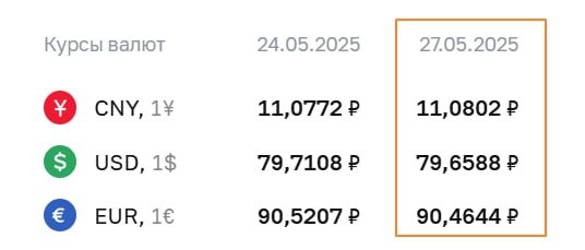 🇷🇺#RUB #fx ЦБ установил официальные курсы валют на 27 мая