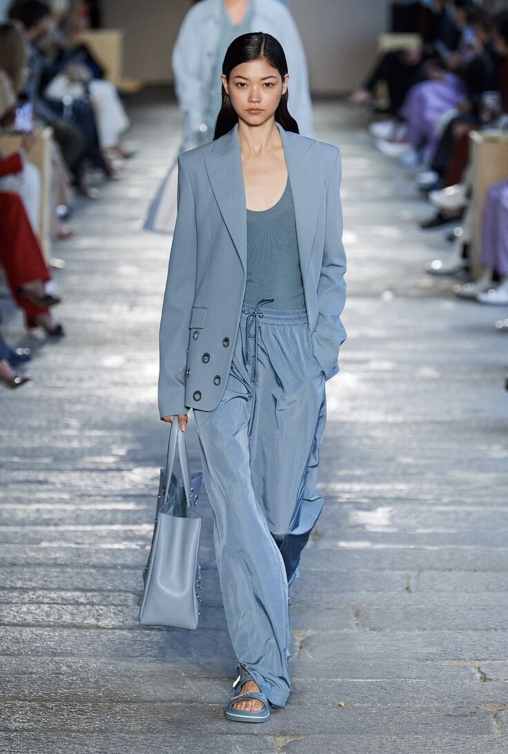 Встаньте прямо: идеальная длина — на уровне середины бедра (не ниже!). Оверсайз — это модно, свободно и объемно, но если плечи «вылезают» за ваши естественные линии, а силуэт напоминает коробку — рост визуально уменьшается, фигура визуально тяжелеет. Как понять, что пиджак слишком большой? Двойные пуговицы, накладные карманы, контрастные лацканы — все это расширяет силуэт, делая его приземистым. Лайфхак: