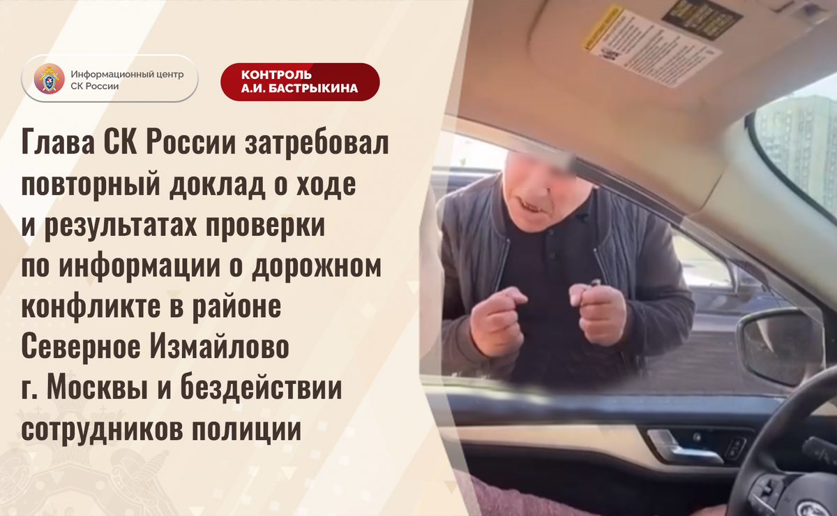 Глава СК России затребовал повторный доклад о ходе и результатах проверки по информации о дорожном конфликте в районе Северное Измайлово г. Москвы и бездействии сотрудников полиции