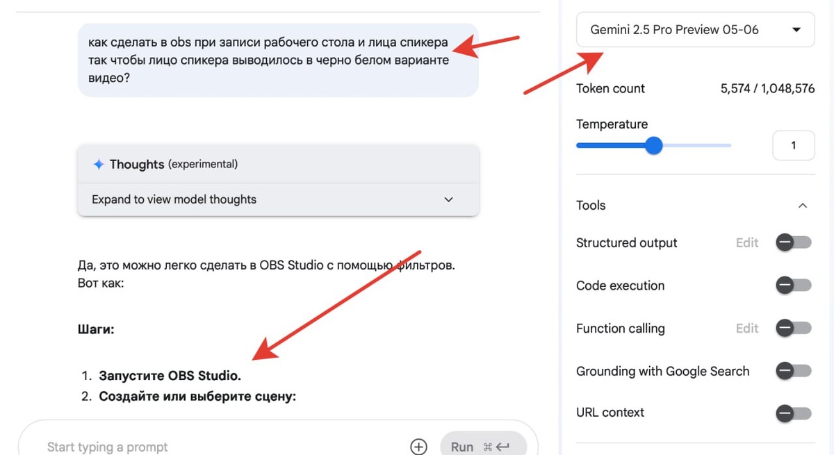 Как ИИ меняет поиск - ощутил на своей шкурке... Я иногда записываю видео с экрана ноута с мордашкой своей, и мне захотелось сделать так, чтобы моя мордашка была в ч/б формате (не цветная) в программе OBS - очень крутая штука для скринкастов (кстати, рекомендую).