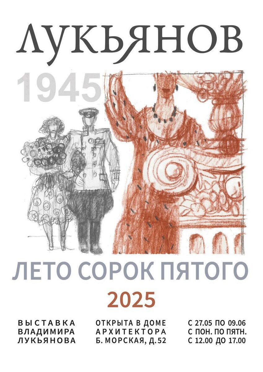 В ответ на пост В День города известный петербургский архитектор, создатель стел и названия «Ржевский коридор» и обелиска «Городу-Герою Ленинграду» Владимир Лукьянов представит персональную выставку «Лето сорок пятого» 🗓 Открытие — 27 мая, 17:00 📍 Большая Морская, 52 Выставка пройдёт Доме Архитектора на Большой Морской. Экспозиция будет посвящена 80-й годовщине Победы в Великой Отечественной войне. На выставке будут представлены архитектурные эскизы, живопись, графика, наброски и предварительные модели монументов скульптора, которые хранятся в фондах Музея истории Санкт-Петербурга и Музея городской скульптуры. Последний раз выставка жителя Красногвардейского района Владимира Лукьянова проходила в Доме Архитектора в 2020 году. 🙌 Пресс-сек Красногвардейского