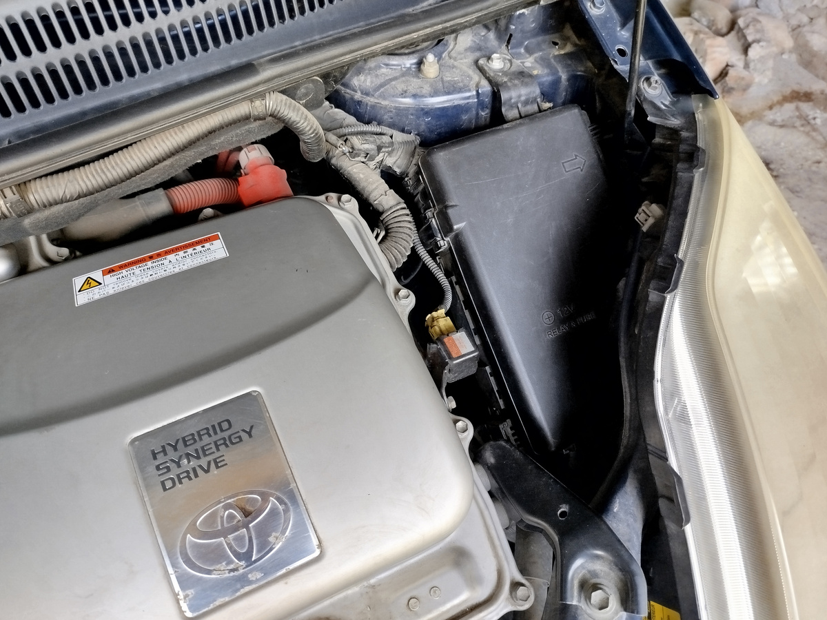 Добрый день дорогие Читатели, сегодня расскажу Вам как правильно прикуривать легендарный автомобиль приус , можно конечно с аккумулятора, которая находится в багажнике, но как правило не очень удобно, к тому же, чтобы получить доступ аккумулятору необходимо разобрать багажный отсек, вытащить фальшпол , контейнер(которое установлена вместо запаски) и кожух над аккумулятором. А вот под капотом в блоке предохранителей есть контакт (см фото №1), где можно подцепить «плюс» крокодильчик(зажим) , а минусовой(массу) крокодильчик можно подсоединить как указано на фото обведен в красный кружок. (см. фото №2) Автомобиль приус можно и от него прикуриваться также, но желательно прикуривать автомобили, у которых емкость аккумулятора, не превышало автомобиля приус – как правило это автомобили малолитражки. И самое главное прикуриваться от него можно , только обязательно в выключенном состоянии, то есть не нажимайте кнопку Power (On), когда прикуриваете от своего приуса к чужому автомобилю, иначе