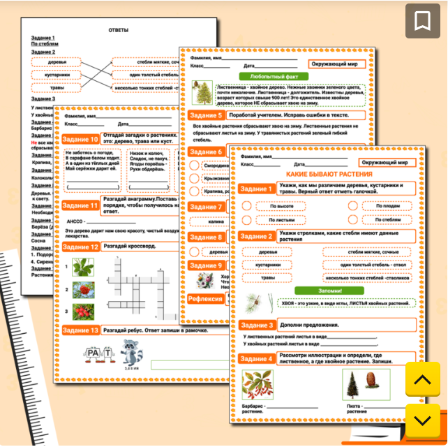 Грамотно составленный рабочий лист – верный помощник учителю в проведении современного урока или учащемуся для самостоятельной проработки темы. Данный рабочий лист «Какие бывают растения» разработан для урока окружающего мира во 2 классе. Рабочий лист включает в себя четыре страницы, из которых три страницы с заданиями, а четвертая содержит ответы для самопроверки.