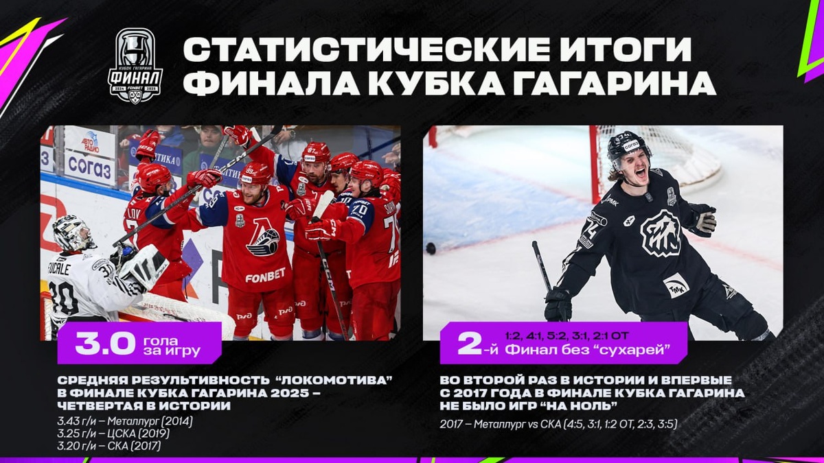 87 матчей, 475 шайб и новый лидер — эти и другие статистические итоги плей-офф Кубка Гагарина 2025