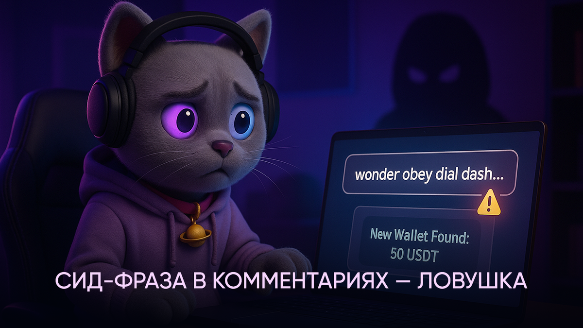 Если вы видели комментарий с сид-фразой и намёком на забытый кошелёк с криптовалютой — перед вами не удача, а мошенническая схема. Она называется Seed Phrase Honeypot Scam и активно используется прямо сейчас. В том числе — под нашими видео Donatrix на YouTube и других платформах. Разберём, как работает эта схема, и почему нельзя “пробовать на всякий случай”. Под роликами Donatrix всё чаще появляются такие комментарии: Спасибо за разбор! У меня есть кошелёк OKX с USDT, и у меня осталась seed-фраза: