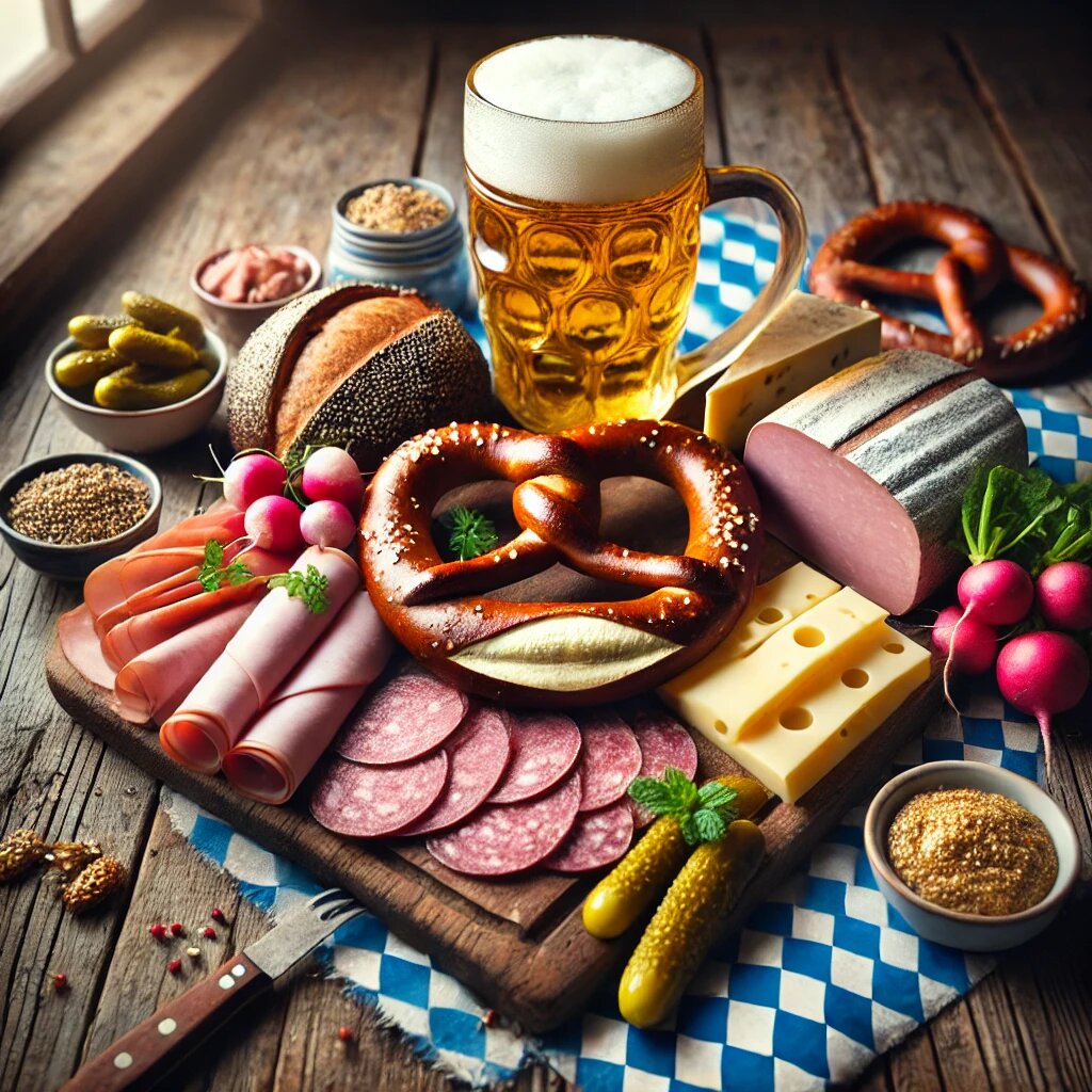 Хлеб в Германии — это не просто еда, а важный культурный символ, который отражает региональные традиции, историю и гастрономические предпочтения. Немцы гордятся своим хлебом: в стране насчитывается более 3000!!! сортов, каждый из которых уникален по составу, вкусу и способу приготовления. Одним из ключевых элементов немецкой кухни является традиция Brotzeit — лёгкая закуска или перекус, который включает в себя разнообразные виды хлеба и сопутствующие продукты. Brotzeit — это не просто пища, а целый ритуал, объединяющий людей, создающий атмосферу уюта и гостеприимства. Die Brotzeit — это небольшая трапеза, часто состоящая из хлеба (das Brot), колбасы (die Wurst), сыра (der Käse), масла (die Butter) и свежих овощей, таких как огурец (die Gurke) и помидор (die Tomate). Для многих немцев Brotzeit — это момент остановиться, отдохнуть, встретиться с семьёй или друзьями и насладиться простыми, но качественными продуктами. Обычно Brotzeit подают как в домашних условиях, так и в Biergarten (пив