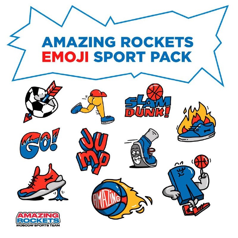 Добавили в наш стикер-пак эмодзи AMAZING ROCKETS 👟⚽️🏀