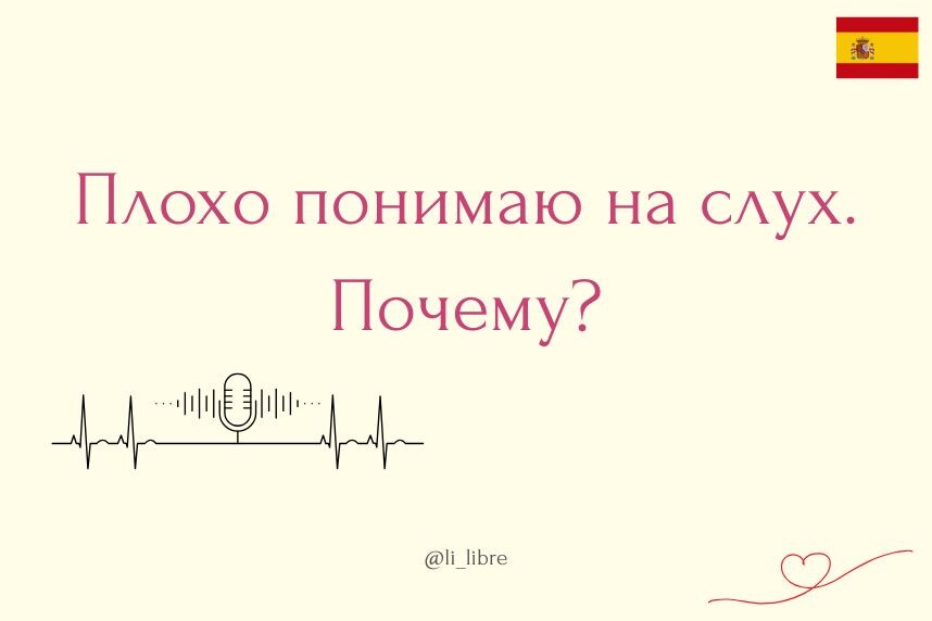 Читаю - всё понимаю, а на слух ничего уловить не могу. Помогите понимать и говорить так, чтобы понимали меня. Я нередко сталкиваюсь с таким запросом. С ним часто приходят те начинающие ученики, которые некоторое время изучали испанский самостоятельно. Кроме того, результаты опроса, который я проводила в Телеграм, показали, что это не просто по случайности меня находят такие ученики. Это общая проблема. И дело тут может быть вовсе не в слухе. Когда вы сами произносите неправильно, вам сложно понимать других людей. Мало того, что акценты испанского довольно разнообразны, есть в нашем языке ещё и слова, которые просто вызывают затруднения 👀 Приведу примеры: ➡️Significa (означает) - очень хочется поставить ударение на ni, хотя правильно на fi. ➡️Ochenta (восемьдесят) - безударную "о" русский ум так и стремится превратить в a. Ачента. ➡️Hablar, habitación, huevo (говорить, комната, яйцо) - непреодолимое желание произнести "h" как "х", но она не читается. 💡Поэтому если вы изучаете