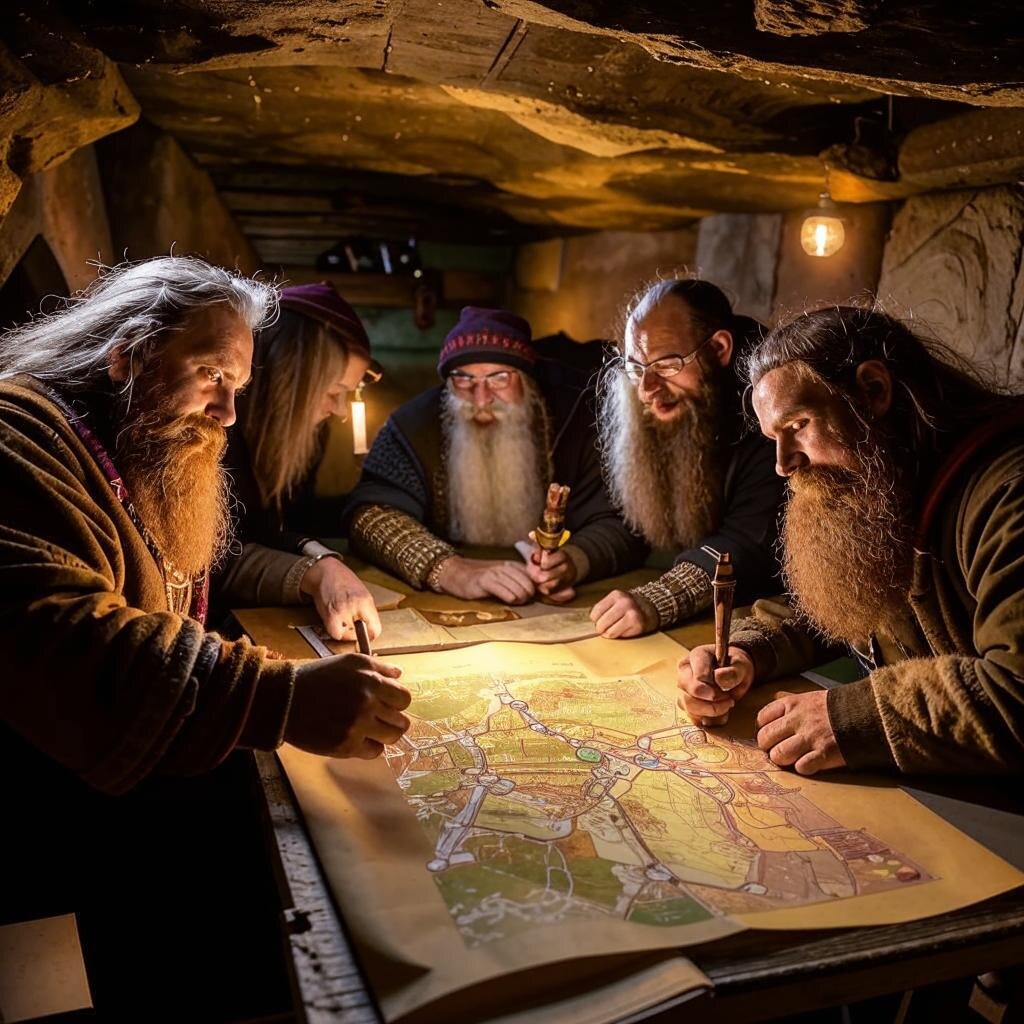 В самом сердце Волшебного леса, где деревья шепчутся с ветром, а ручьи поют колыбельные для рыб, жили маленькие гномы из деревни Топотушки. Их домики, похожие на грибы с кирпичными трубами, прятались под корнями древних дубов. Гномы обожали три вещи: печь имбирное печенье, устраивать гонки на жуках и… рисовать карты. Но не простые, а особенные — карты, которые предупреждали об опасностях. Ведь лес был полон ям, коварных рек и таинственных тропинок, ведущих в никуда. Однажды утром старший гном по имени Боровик собрал всех на поляне. Его борода, запутавшаяся в пряжке ремня, дрожала от волнения: — Друзья! Пора создать новую карту — «Тропу Доверия»! Пометить все опасные места, чтобы никто не потерялся! — А как насчёт тех, кто сам опасен? — прошептала гномка Росинка, поправляя очки в форме листьев. — Хм… — Боровик почесал затылок. — Доверять нужно только тем, кто помогает без хитростей! И работа закипела. Гномы разделились на группы: одни измеряли глубину рек, другие ставили флажки