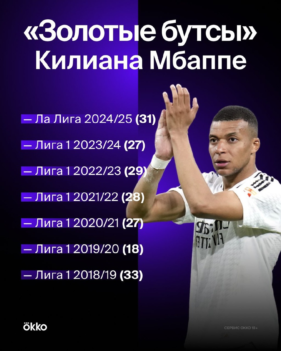 Килиан Мбаппе становился лучшим бомбардиром своего чемпионата 7 лет подряд. Он единственный игрок с таким достижением в истории топ-5 лиг. Вот это настоящий форвард 👏