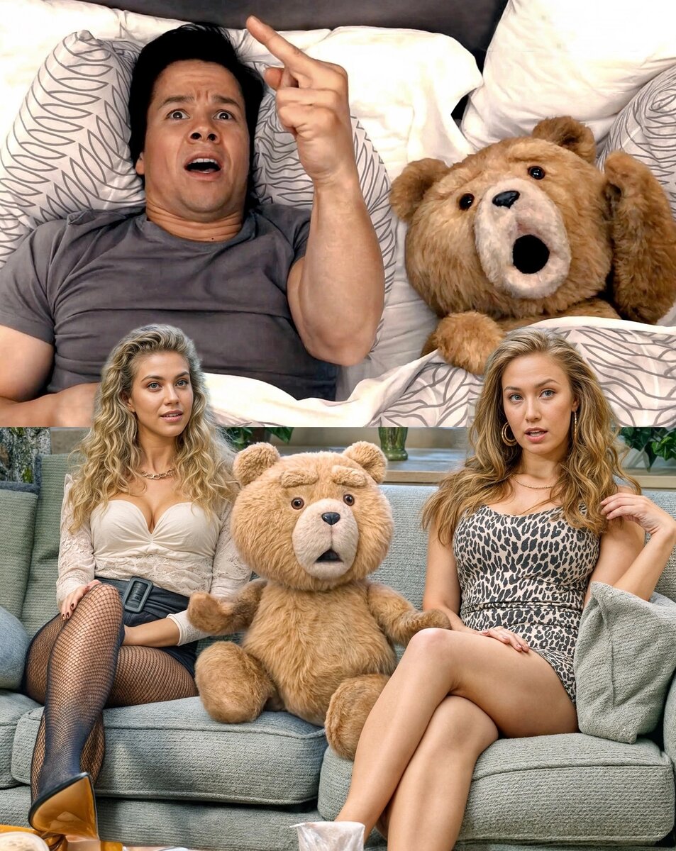 📌 **Сюжет:** Джон (Марк Уолберг) в детстве загадал желание, чтобы его плюшевый мишка Тед ожил. Чудо случилось, но теперь, спустя годы, Тед (озвучка МакФарлена) — это **тусовщик, бабник и любитель травки**, который тянет Джона в хаос вместо взрослой жизни.