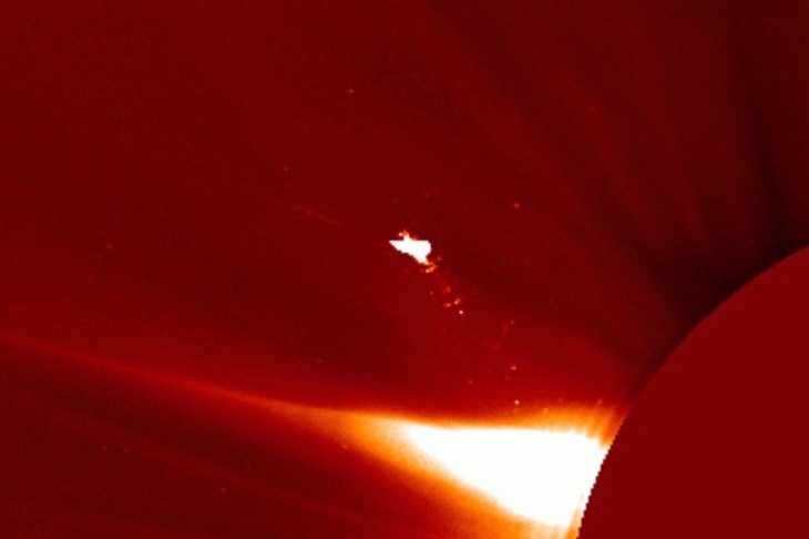 Странный объект, напоминающий силуэт огненной птицы, который запечатлел на Солнце телескоп LASCO, скорее всего останется загадкой для ученых. Таким мнением сегодня, 26 мая, поделились сотрудники Лаборатории солнечной астрономии ИКИ и ИСЗФ. - Какого-то цельного объяснения так пока и не сложилось, что, впрочем, обычное дело в наблюдательной астрономии. Мы сами порой наблюдали на своих инструментах эффекты, объяснения которым так и не нашли. В настоящее время наблюдательная астрономия уверенно классифицирует 99.9 % объектов, которые видит LASCO, но 0.1 или даже 0.01 % остаются необъясненными. Птица, скорее всего, так и останется в этой группе, - предположили ученые. Также они озвучили собственную гипотезу о том, что на снимке все же запечатлен реальный объект, который лишь проецируется на Солнце, но расположен не около аппарата, а на некотором удалении - от нескольких десятков до нескольких сот километров. - При такой интерпретации, скорее всего, на снимке наблюдается разрушение объекта (