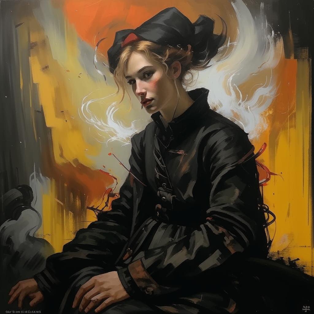 Я назвал эту серию картин в духе Отто Дикса (нарисованных ИИ, понятно) "Веймарским сплином". Даже не знаю, употреблялось ли сто лет назад в немецком языке новомодное словечко "сплин", - русские обычно говорили "хандра" (у Чехове всё время о хандре), англичане называли это выражением "blue cheer" (букв. "синяя тоска"), - но в любом случае слово "меланхолия" уж точно немецкое с давних пор, учитывая, что пришло это слово из Антики ещё. Тем не менее - исключительно из-за звучности - я выбрал слов "сплин", потому что "Веймарская меланхолия, либо хандра" не годится. "Сплин" - это какое-то странное словечко, выражающее не столько тоску или тяжесть бытия, сколько уныние, бесконечное рутинное уныние. - Именно то, чем была Веймарская республика, когда последние крупицы патриархального огня погасли в неописуемом ужасе Первой Мировой войны. Вдобавок для немцев всё усугубилось жесточайшим предательством - восстанием матросов в Киле, хотя на фронте не было ни малейших предпосылок к поражению - немцы