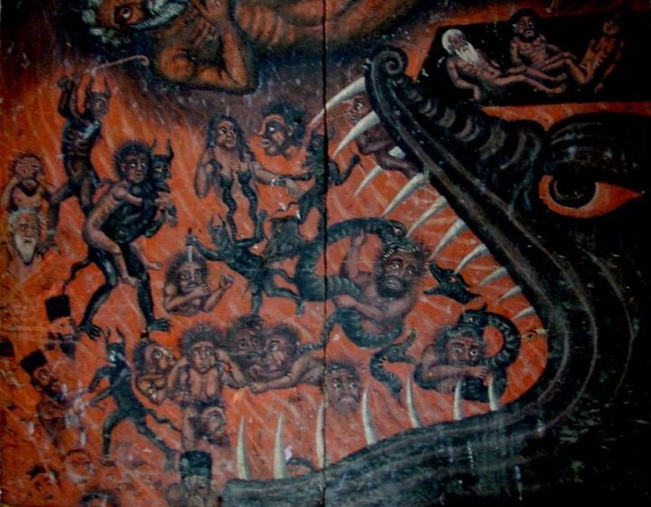 Житие Василия Блаженного содержит весьма зловещий эпизод. Подойдя однажды к Варварским вратам Китай-города, юродивый увидел толпу богомольцев, пришедших поклониться выставленной на воротах иконе Богоматери, слывшей чудотворной. Вместо того, чтобы присоединиться к молящимся, Василий Блаженный неожиданно обратился к своему ученику с требованием разбить омерзительный образ. Когда ученик в ужасе отказался выполнить приказ, юродивый сам схватил камень и что есть силы швырнул им в святой образ, расколов его на части. Когда же разгневанная толпа привела «святотатца» на суд, Василий Блаженный показал, что под верхним слоем краски на иконе скрывается изображение сатаны... Так впервые в литературном памятнике XVI века всплывает упоминание о так называемых адописных иконах – легендарном культурном феномене в истории русской православной иконописи, когда под традиционными образами святых скрывались богомерзкие дьявольские изображения. Этнографы XIX века описывали адописные иконы так: иконописец и