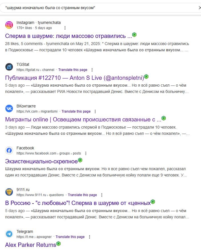 В одной из предыдущих статей был сделан небольшой разбор по одному из многочисленных вражеских ресурсов на просторах нашего информационного сегмента. Речь шла о вариантах искажения новости, связанной с отравлением шаурмой в Егорьевске. Давайте поищем иные ресурсы, находящиеся в одной вражеской орбите, на примере цитаты из вражеской статьи. Например, фраза "несуществующего Дениса", который якобы давал интервью РИА новости: "шаурма изначально была со странным вкусом".