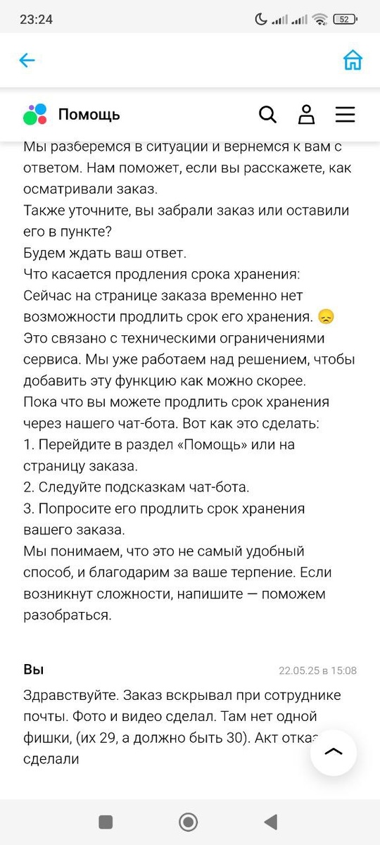 Тут уже история с Авито в мою пользу, площадка компенсацию мне выплатила. Сама история такая: Покупатель заказал у меня фишки, причем хотел сначала купить у меня только одну фишку, т.к. ему не хватало в наборе. Я отказался, так как что мне тогда делать с остальными 29 фишками (в нардах набор состоит из 30 фишек, иногда 32, где 3 запасные). В итоге, покупатель заказал весь набор, а при поступлении заказа в его ПВЗ, после проверки, отказался от него. Фишки поехали назад ко мне. Доставка осуществлялась одним из партнеров Авито, Почтой России, и тут укажу в плюс моему отделению в Москве – оператор в отделении Почты настоял на проверке, и выяснилось, что набор при доставке «усох» как раз на белую фишку, которая нужна была покупателю. Оператор Почты, сразу, без сообщения в поддержку Авито, оформила Акт возврата, сказала сфотографировать и снять на видео посылку и ее содержимое, описать чего не хватает. После всех этих манипуляций посылку оставили на хранение на Почте. На следующий день я св