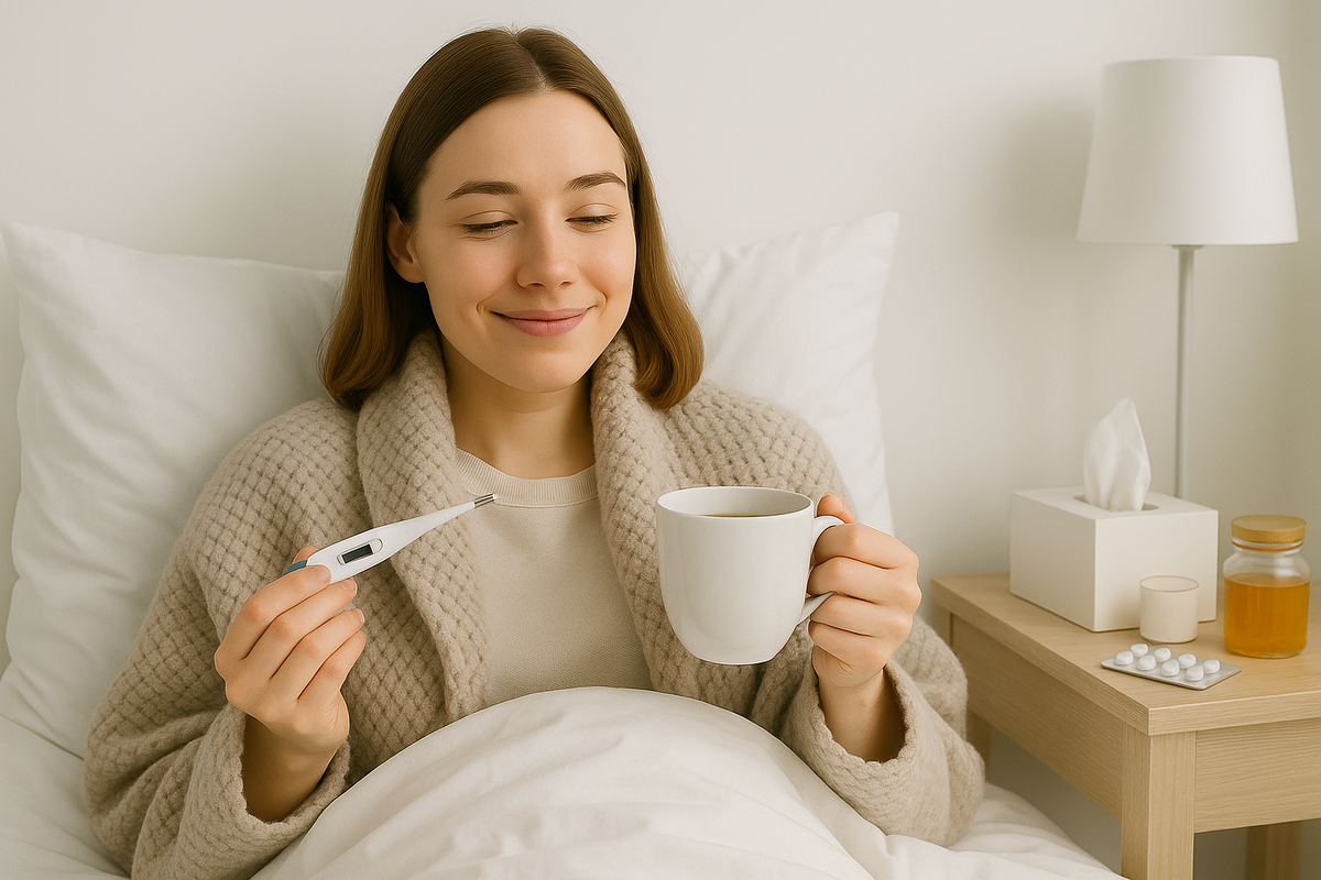 Заложен нос, першит в горле, и хочется только одного — укутаться в одеяло и чтобы всё это поскорее закончилось. Простуда — штука неприятная, но с ней можно справиться быстрее, если знать, как действовать правильно. Вот пошаговый план, чтобы встать на ноги за пару дней. Самое важное — дать телу восстановиться. Сон и покой помогают иммунной системе работать на полную. Если есть возможность — возьми выходной, отмени дела, завернись в плед и выдыхай. Чай с мёдом, лимоном, тёплая вода, бульон — всё это не просто комфорт, а способ снизить интоксикацию и поддержать организм. Избегай кофе и алкоголя — они обезвоживают. Это простое действие помогает снять отёк, вымывает вирусы и облегчает дыхание. Готовый спрей из аптеки или раствор из воды и соли (1 ч.л. на стакан) — оба работают. Повышенная температура — сигнал, что иммунитет борется. Если чувствуешь себя терпимо, просто отдыхай и пей. Сбивать стоит только при сильном дискомфорте или температуре выше 38,5°C. Тёплая вода с содой, солью и