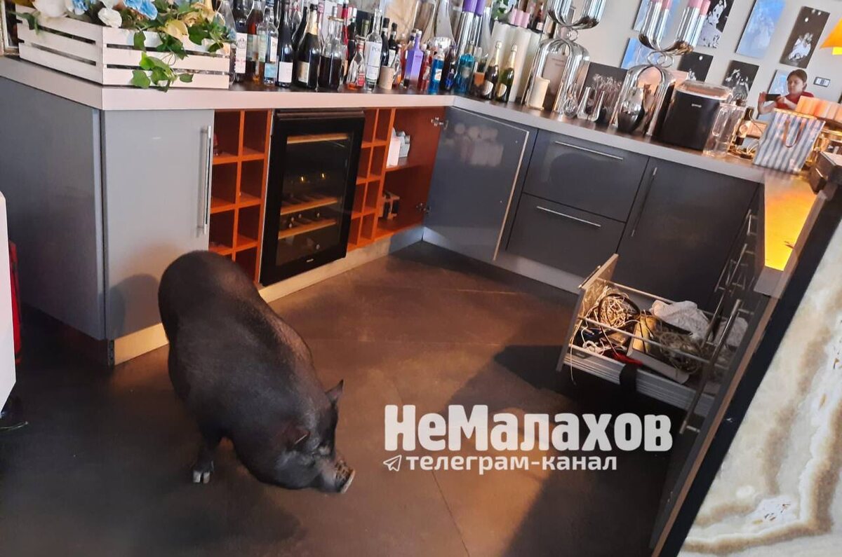 Ничего особенного, просто дома у режиссера Валерии Гай Германики живет свинья. Скучающая свинья в доме - это развал общественного порядка. Открывает все ящики в баре, открывает холодильники, все достает, выжирает, выпивает и куролесит. Постоянно надо развлекать свинью. Ниче не напоминает? - рассказала хозяйка порося