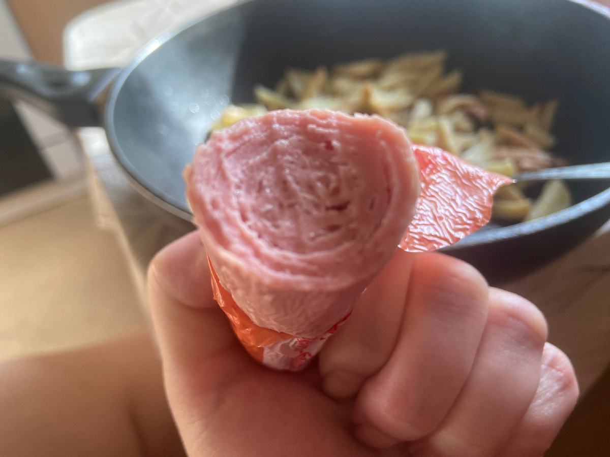 На обед запарила картофельное пюре ролтон, соорудила бутерброды с помидоркой и колбасой, налила горячего какао.