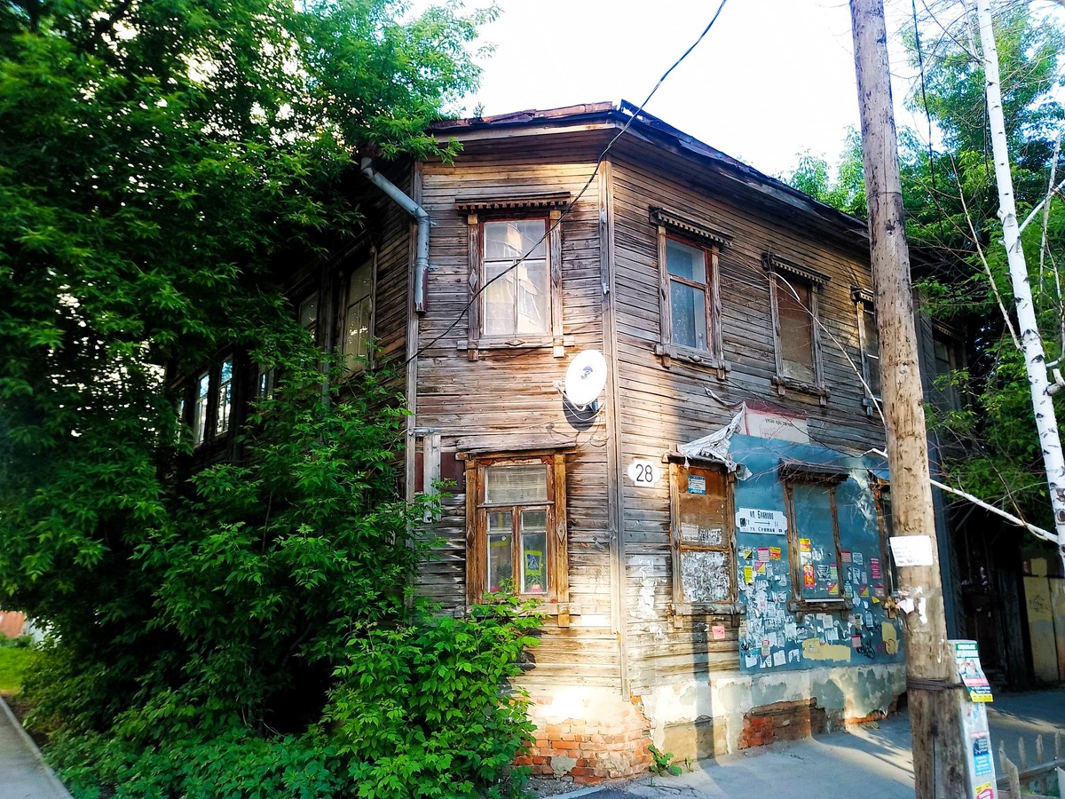 Классический старый самарский многоквартирный дом - первый этаж кирпичный, второй - деревянный...