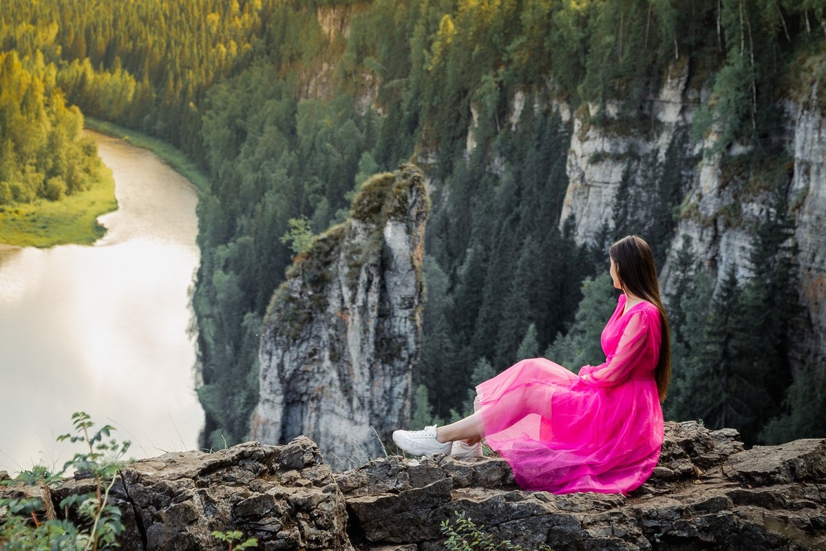 С высоты смотровой площадки открывается вид на бескрайние просторы «пермского моря» — тайгу, уходящую за горизонт. А внизу — причудливые скалы, похожие на застывших великанов. По легенде, это окаменевший город, проклятый за грехи его жителей.