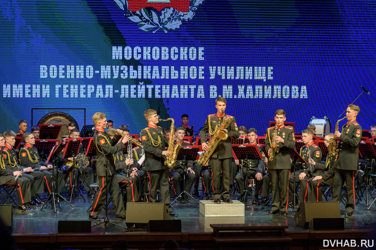 В ГДК прошел сольный концерт оркестра суворовцев Московского военно-музыкального училища имени генерал-лейтенанта В.М. Халилова, Пансиона воспитанниц Министерства обороны РФ (Москва) и военного оркестра штаба Тихоокеанского флота (Владивосток).