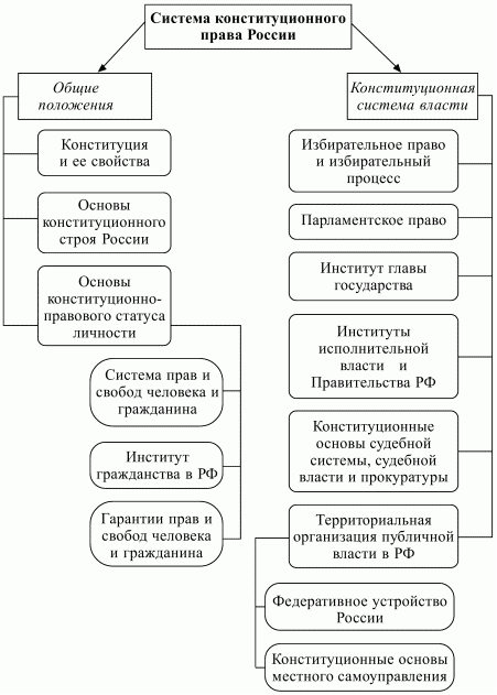 В то же время с определенной долей условности в системе конституционного права России можно выделить две части (схема).
