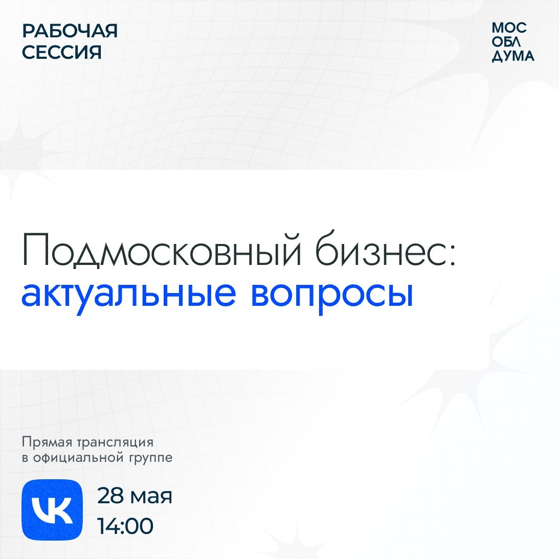 🔹28 мая в Московской областной Думе состоится рабочая сессия: «Подмосковный бизнес: актуальные вопросы