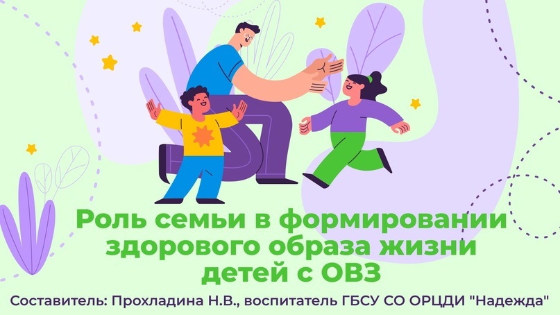 Семья играет главную роль в развитии личности ребёнка с ОВЗ - это главное в социальной интеграции, социализации личности. Участие родителей в социализации ребёнка рассматривается как непременное условие эффективности этого процесса. В семье ребёнок усваивает навыки поведения, представления о себе и других, о мире в целом. Детям с ограниченными возможностями необходимо помогать формировать навыки и умения ведения здорового образа жизни, заниматься физической культурой и спортом, обеспечивать безопасное поведение.